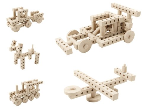 Zložte si zo 67 dielikov auta alebo zvieratka podľa vašich predstáv. Alebo využite niektorý z návodov na krabici a zabavte seba aj svoje deti na dlhé hodiny drevenou kreatívnou zábavou. Základná stavebnica CONSTRUCT obsahuje niekoľko druhov drevených dielikov: bukové valčeky priemeru 32 mm s kolíkmi, hranoly 32x32 mm v dĺžkach od 32 do 384 mm s otvormi, kolieska s priemerom 85 mm a čapy. Tieto dieliky umožňujú postaviť niekoľko rôznych variantov dopravných prostriedkov, zvieratiek a mnoho ďalších modelov. Stavebnica je uložená v pevnej kartónovej krabici, ktorá zaisťuje jej dlhoročnú životnosť a na ktorej nájdete inšpiráciu na zloženie niekoľkých modelov.