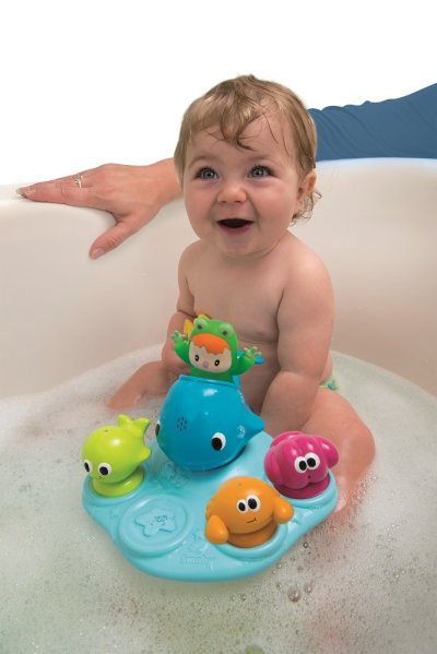 Plávajúci ostrov s postavičkou Cotoons a striekacími zvieratkami na zábavné kúpanie. Veľrybu je možné použiť aj ako kanvičku. Všetky zvieratká majú prísavky. Rozmery ostrova: 24 x 15 x 21 cm.