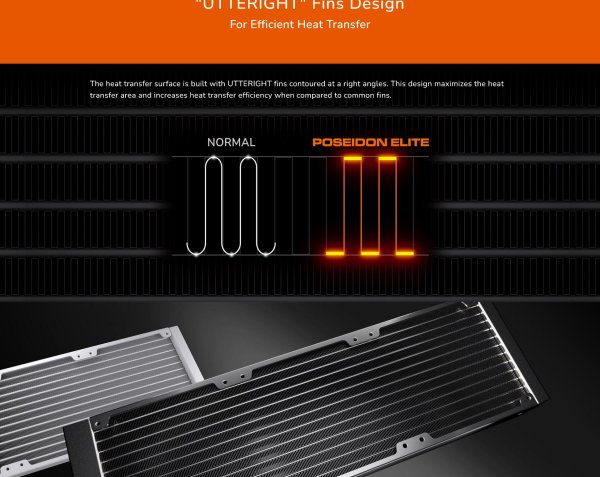The Poseidon Elite ARGB AIO liquid cooler delivers high cooling performance. S unikátnou 90-degree UTTERIGHT fíns, vysoko-efektívne fanúšikov, a brilantné ARGB osvetlenie v infinity zrkadlový dizajn, váš systém bude bežať a hľadať na to najlepšie.