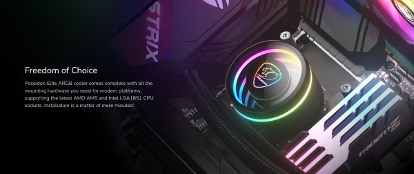 Poseidon Elite argb chladič obsahuje kompletné s celým hardvérom namontovania, ktoré potrebujete pre moderné platformy, podporujúc latest AMD a Intel CPU sockets. Installation is matter of mere minutes!