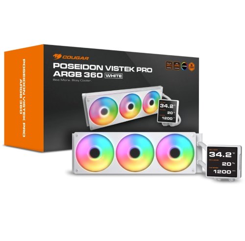 Poseidon Vistek Pro ARGB zobrazuje vysoké rozlíšenie, monitorovanie systému v reálnom čase v ultra ostrom obraze na veľkom 3,95" IPS LCD displeji s prispôsobiteľným vizuálnym zobrazením, čo zvyšuje účinnosť vodného chladenia vďaka okamžitému prehľadu o dátach.