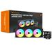 - Jednorámové ventilátory PWM zaisťujú efektívne pripojenie, presne riadené chladenie a živé RGB osvetlenie.
