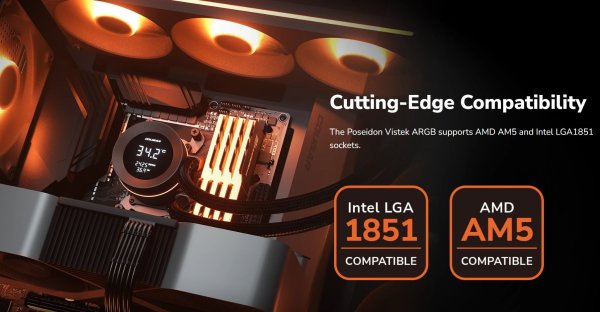 Poseidon Vistek ARGB podporuje pätice AMD AM5 a Intel LGA1851.