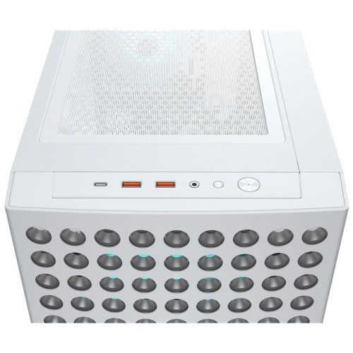 Či už dávate prednosť portom a tlačidlám na hornej alebo spodnej strane, táto funkcia vám umožní umiestniť ich tam, kde vám to najviac vyhovuje. Táto prispôsobivosť zaisťuje, že všetky vaše pripojenia sú ľahko prístupné bez ohľadu na to, akým spôsobom skriňu orientujete. 4-pólový konektor pre slúchadlá a tlačidlo RGB.