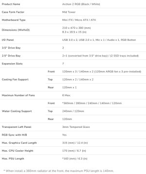 Archon 2 RGB šport an attractive and elegant design. Pomocou troch ARGB fanúšikov, temperovaný sklo front panel showcases stunning lighting view. Integrated lighting button allows it to displej amazing lighting effects. Mighty support for up a 360 mm radiátor, a 315 mm grafická karta, a 170 mm CPU cooler deliver superior value for you.