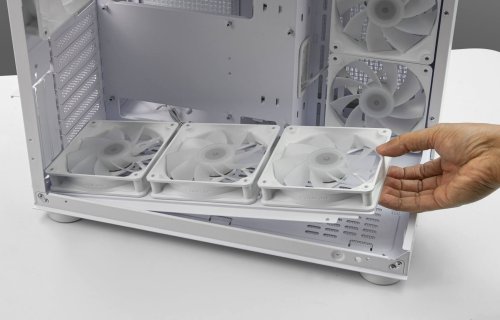 Uprednostnili sme užívateľské pohodlie vďaka navrhnutému spodnému držiaku ventilátorov, ktorý vám umožní pripevniť ventilátory priamo k držiaku pred inštaláciou, čo vám ušetrí čas a námahu pri inštalácii.