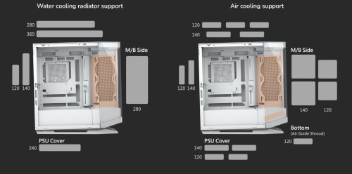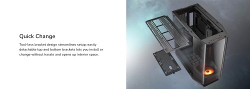 Je kompatibilný s najmodernejšími základnými doskami E-ATX a pojme grafické karty s dĺžkou 420 mm, s otočnými držiakmi pre horizontálnu/vertikálnu orientáciu.