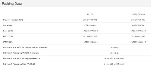 Harmonický dizajn skrine FV270 RGB, ktorý spája tvar s funkciou, nastavuje nový štandard pre dynamiku prúdenia vzduchu. Umiestnenie chladiacich ventilátorov na šikmých plochách zaisťuje neprerušovaný, sústredený prúd vzduchu a naklonená predná časť umožňuje prístup k ďalšej osi ventilácie, ktorá umožňuje prívod vzduchu zospodu.