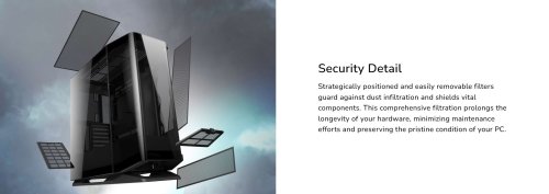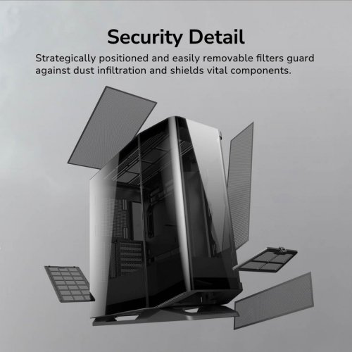 Strategicky umiestnené a ľahko odnímateľné filtre chránia pred vnikaním prachu a chránia dôležité komponenty. Táto komplexná filtrácia predlžuje životnosť vášho hardvéru, minimalizuje údržbu a zachováva váš počítač v perfektnom stave.