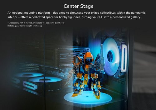 Voliteľná otočná platforma** - navrhnutá na vystavenie vašich cenných talizmanov v panoramatickom interiéri. Ponúka vyhradený priestor pre figúrky obľúbených postáv a premení váš počítač v osobnej galérii.