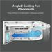 Šikmé umiestnenie chladiacich ventilátorov sústreďuje prúd vzduchu do neprerušovaných, kontinuálnych prúdov.