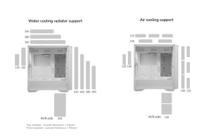 - Choice of 420mm front panel alebo 360mm top panel water cooling support.