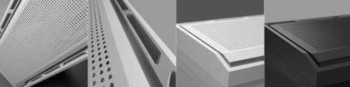 - Perforovaný predný panel umožňuje výkonné prúdenie vzduchu a vetranie