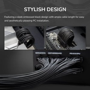 Elegantný embosovaný čierny design s dostatočnou dĺžkou kábla pre jednoduchú a estetickú inštaláciu počítača.