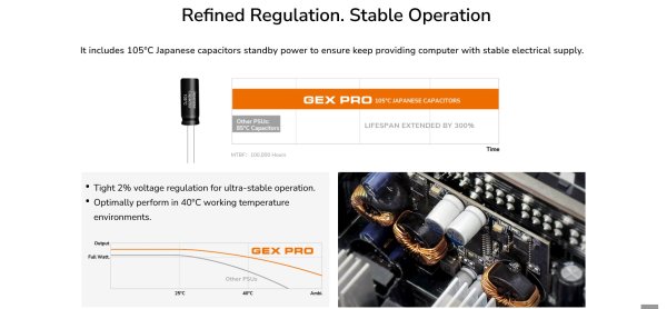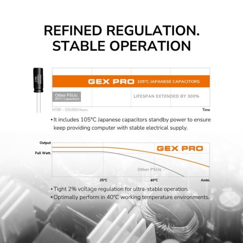 Rad GEX PRO sa vyznačuje vysoko účinnou konštrukciou, ktorá prekračuje štandard 80 PLUS Gold, a pomáha vám tak ušetriť peniaze za elektrinu.