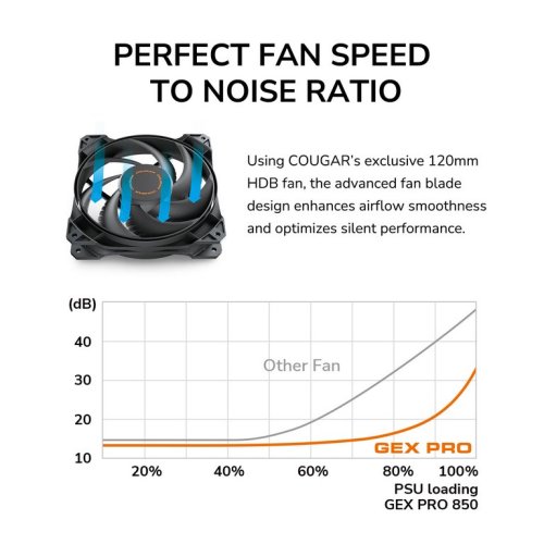 Rad COUGAR GEX PRO sa pýši vysoko kvalitnou certifikáciou 80 PLUS Gold a dosahuje až 91% účinnosti premeny. Tento zdroj využíva natívnu konštrukciu konektora PCIe 12V-2X6 a dodáva napájanie grafickým kartám novej generácie prostredníctvom jediného kábla 12+4-pin, čím ich uvádza do súladu so štandardom Intel ATX 3.1. Vďaka bezchybnému napájaniu v prostredí s teplotou 40 ° C je určený pre užívateľov, ktorým záleží na cene, ale zároveň nechcú robiť kompromisy v oblasti spoľahlivosti a tichosti.