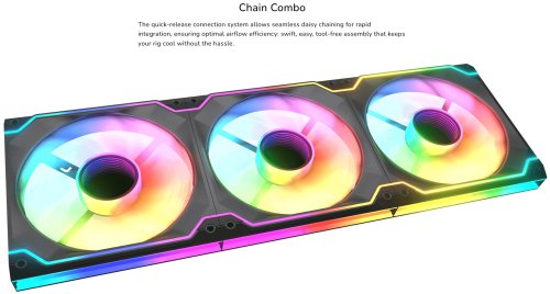 Modulární ventilátory jsou cestou budoucnosti: systém rychlého připojení umožňuje snadné řetězení pro rychlou a bezproblémovou montáž. Vylepšené kanály proudění vzduchu zvyšují účinnost a snižují hlučnost rozdělením proudu vzduchu do minimálních proudů; design nekonečného zrcadla přináší dynamické světelné efekty, doplněné LED lištou vytvářející souvislý obrys.