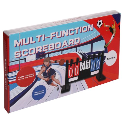 Univerzálny ukazovateľ skóre Merco Counter je perfektnou voľbou pre školské telocvične, športové kluby aj amatérske turnaje. Je vhodný pre väčšinu loptových a individuálnych športov. Tento ukazovateľ je vyrobený z odolného ABS plastu as PVC číslicami s bodovým rozpätím 0-9. Súčasťou je aj fixka pre označenie hráča / tímu do rámčekov pod bodmi. Praktický, prehľadný a ľahko prenosný, to vystihuje ukazovateľ skóre Counter. - materiál: ABS plast + PVC - čísla: 0 - 9 - rozmery po zložení: 44 x 24,5 x 16,5 cm (Š x V x H) - hmotnosť: cca 0,5 kg - rozmery čísel: 11 x 5 cm a 7,5 x 5 cm - rozmery balenia: 37 x 21 x 3 cm - súčasťou fix