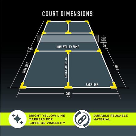 Súprava Merco Court Marker Kit obsahuje žlté značky, ktoré slúžia pre zreteľné ohraničenie kurtu na pickleball. Značky sú vyrobené z odolného silikónu, vďaka ktorému ich môžete používať vonku aj vo vnútri. V balení nájdete 4 kusy značiek v tvare "L" a 8 kusov v tvare "T". Rozmery jednej značky sú 26,7 x 26,7 cm. Na našom e-shope taktiež nájdete sady rakiet pre pickleball. Na vytvorenie kompletného kurtu odporúčame aj stojany so sieťou Merco Pickleball Set. - sada značiek: 4 ks "L" + 8 ks "T" - materiál: silikón - rozmery značky: 26,7 x 26,7 cm - hmotnosť balenia: 0,7 kg