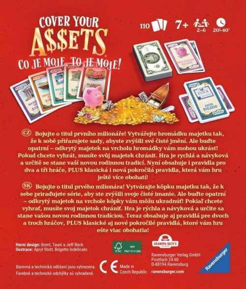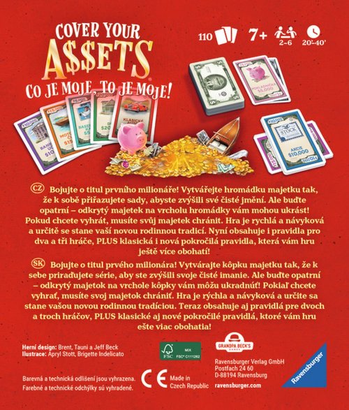 Bojujte o titul prvého milionára! Vytvárajte kôpku majetku tak, že k sebe priraďujete sady, aby ste zvýšili svoje čisté imanie. Ale buďte opatrní - odkrytý majetok na vrchole kôpky vám môžu protihráči ukradnúť! Pokiaľ chcete vyhrať, musíte svoj majetok chrániť. Hra je rýchla a návyková a určite sa stane vašou novou rodinnou tradíciou. Hra ČO JE MOJE, TO JE MOJE! obsahuje pravidlá pre dvoch a troch hráčov, PLUS klasické aj nové pokročilé pravidlá, ktoré vám hru ešte viac obohatia! Obsahuje: 110 kariet, pravidlá hry