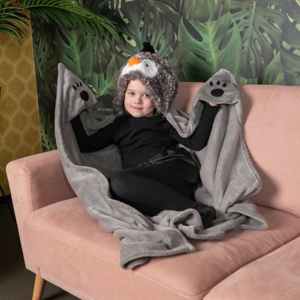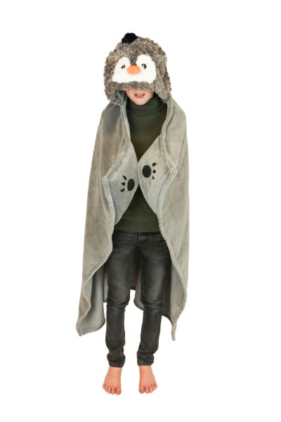 Cozy Noxxiez BL813 Tučniak - hrejivá deka s kapucňou so zvieratkom a labkovými vreckami