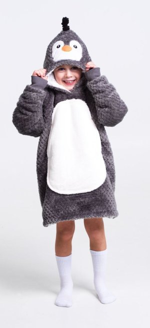 Cozy Noxxiez CH303 Tučniak - hrejivá televízna mikinová deka s kapucňou pre deti 3 - 6 rokov