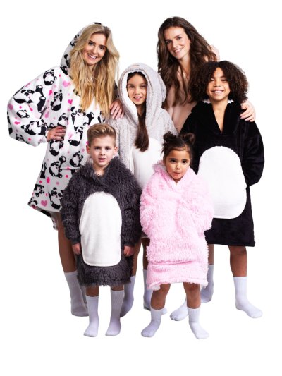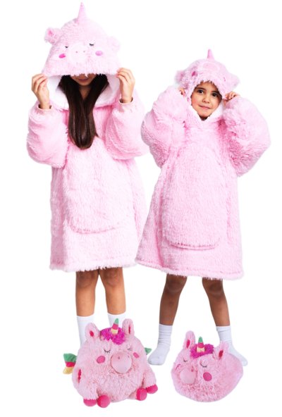 Veľká mikina s kapucňou s motívom zvieratka, ktorá plní funkciu teplučké, mäkučké a nadýchané deky, ktorá zahreje pri každej príležitosti a navyše deti potešia svojim hravým a ľúbivým dizajnom. Vnútro mikiny bolo vyrobené z hrejivého nadýchaného sherpa fleecu a lícová strana zo super mäkkého hebkého materiálu, používaného na výrobu tých najmäkších diek. Všetky mikiny z tohto radu majú aj veľké predné vrecko, v ktorom sa dajú krásne ohriať studené ruky. Každé dieťa sa v nej bude určite cítiť pohodlne, či už doma na gauči pri sledovaní televízie alebo odpočinku, alebo len tak pri hraní sa, kedy ho nijako nebude obmedzovať v pohybe. Veľmi praktická je ale aj pri stanovaní či iných outdoorových aktivitách alebo len tak pri vonkajšom posedení na záhrade v chladnejšom počasí. Táto mikina a deka v jednom je krásnym a praktickým darčekom. V ponuke Cozy Noxxiez nájdete v mnohých prípadoch v rovnakom dizajne aj hrejivý plyšový vankúš 3 v 1, obrí hrejivý pantofel, alebo hrejivú deku s kapucňou so zvieratkom a labkovými vreckami a môžete mať tak celú zahriaty sadu perfektne zladenú.