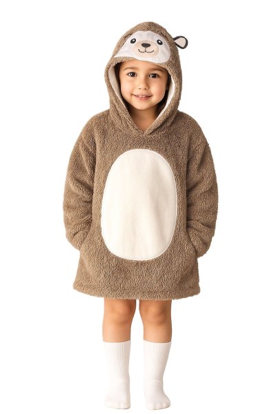 Veľká mikina s kapucňou s motívom zvieratka, ktorá plní funkciu teplučké, mäkučké a nadýchané deky, ktorá zahreje pri každej príležitosti a navyše deti potešia svojim hravým a ľúbivým dizajnom.