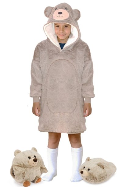 Cozy Noxxiez CH328 Medveď - hrejivá televízna mikinová deka s kapucňou pre deti 7 - 12 rokov