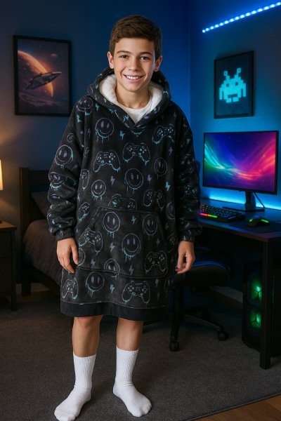 Cozy Noxxiez CH340 PC hráč potlač - hrejivá televízna mikinová deka s kapucňou pre deti 7 - 12 rokov
