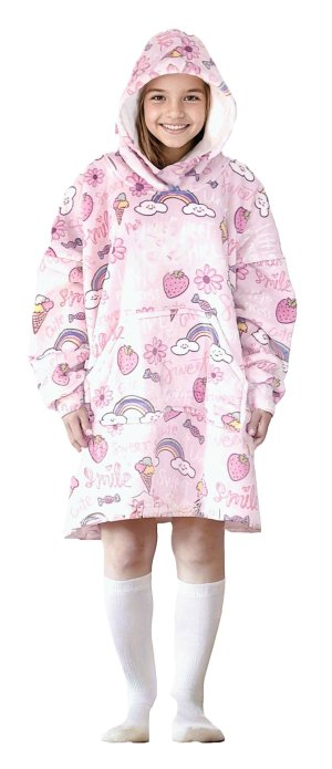 Cozy Noxxiez CH341 Sladkosti potlač - hrejivá televízna mikinová deka s kapucňou pre deti 7 - 12 rokov