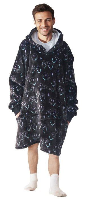 Veľká mikina s kapucňou, ktorá plní funkciu teplučké, mäkučké a nadýchané deky, ktoré zahreje pri každej príležitosti. Vnútro mikiny bolo vyrobené z hrejivého nadýchaného sherpa fleecu a lícová strana zo super mäkkého hebkého materiálu, používaného na výrobu tých najmäkších diek. Všetky mikiny z tohto radu majú aj veľké predné vrecko, v ktorom sa dajú krásne ohriať studené ruky. Každý sa v nej bude určite cítiť pohodlne, či už doma na gauči pri sledovaní televízie, čítaní knižky, alebo inom druhu odpočinku, kedy ho nijako nebude obmedzovať v pohybe. Dobré využitie sa nájde napríklad aj pri práci na PC, kedy sa človek naozaj veľmi nezahreje. Veľmi praktická je ale aj pri stanovaní či iných outdoorových aktivitách alebo len tak pri vonkajšom posedení na záhrade v chladnejšom počasí. Táto mikina a deka v jednom od značky Cozy Noxxiez je krásnym a praktickým darčekom pre ženy aj mužov, vďaka vtipným potlačám, alebo variante bez nich. V ponuke Cozy Noxxiez nájdete v niektorých motívoch aj ucelené kolekcie, ktoré obsahujú: hrejivý plyšový vankúš 3 v 1, obrí hrejivý pantofel, alebo hrejivú deku s kapucňou so zvieratkom a labkovými vreckami a môžete mať tak celú zahrievaciu sadu perfektne zladenú.