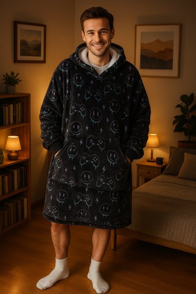 Cozy Noxxiez CH370 PC hráč potlač - hrejivá televízna mikinová deka s kapucňou pre teenagerov a dospelých
