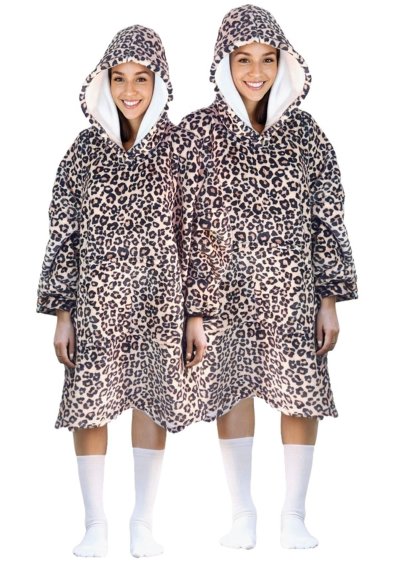 Cozy Noxxiez CH371 Leopard potlač - hrejivá televízna mikinová deka s kapucňou pre teenagerov a dospelých