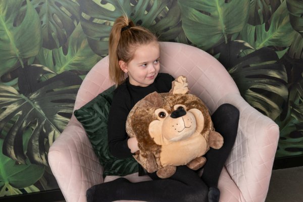 Mäkučký vankúš, rukávnik na ohriatie rúk alebo verný kamarát plyšák? To všetko nájdete v jednom. Tento nápaditý vankúš so zvieratkom sa stane veľmi rýchlo najlepším kamarátom každého dieťaťa. Navyše je pre deti naozaj ideálnym spoločníkom na cestách v aute, lietadle, vlaku, ale aj krásnym dekoračným doplnkom každej detskej izbičky. Každý vankúš z tohto radu slúži ako ohrievač rúk, pretože má po stranách 2 otvory. Stačí len vložiť ruky dovnútra a za chvíľku sú teplé. Navyše spomínané bočné otvory môžu slúžiť aj ako dokonalá tajná skrýša, kam sa dá všeličo schovať, čo deti priam milujú. Tento produktový rad ponúka vankúše s mnohými motívmi zvieratiek a niekoľko aj s motívom ovocia, takže každý malý člen rodiny môže mať svojho obľúbeného maznáčika. V ponuke Cozy Noxxiez nájdete v mnohých prípadoch aj obrí hrejivý pantofel alebo deku s kapucňou a vreckami s motívom rovnakého zvieratka a môžete mať tak celú zahrievaciu sadu v rovnakom dizajne. V roku 2023 pribudli v ponuke, ako úplná novinka, aj televízne mikinové deky pre deti vo veku 3 – 6 rokov a 7 – 12 rokov, ktoré tiež tematicky patria k niektorým kolekciám. Stručný popis a doplňujúce informácie: • Super mäkký a príjemný materiál • Slúži ako rukávnik na ohrievanie rúk (po stranách sú dva otvory) • Ideálne pre cestovanie • Veľkosť 35 cm x 35 cm x 35 cm • Materiál: 100% polyester • Ručné pranie, sušiť vyvesením• Vek: certifikované od 0 mesiacov• Navrhnuté v Holandsku