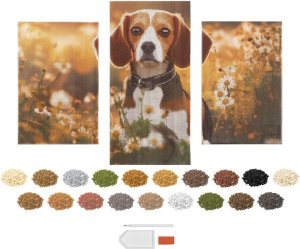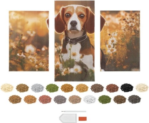Kreatívna sada Diamond Painting Triptych ti umožní vytvoriť dych vyrážajúci trojdielny obraz s motívom psa. Každé plátno je potlačené špeciálnym vzorom s lepiacou vrstvou, do ktorej ľahko umiestniš farebné diamantové kamienky podľa priloženej legendy. Výsledok tvorí krásny trblietavý obraz, ktorý zaujme na každej stene. Diamantové maľovanie je ideálna činnosť pre deti aj dospelých - podporuje sústredenie, trpezlivosť a jemnú motoriku. Je to skvelá forma relaxácie, pri ktorej si oddýchneš a zároveň vytvoríš jedinečnú dekoráciu. Výhody sady