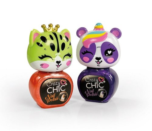 Do kolekcie Lovely radu Crazy Chic bola pridaná nová sada lakov na nechty. Každé roztomilé zvieratko predstavuje jednu farbu laku na nechty na vytvorenie super elegantných nechtov. Obsahuje: 2 laky na nechty v rôznych farbách, aby ste si mohli vytvoriť nechtovú kresbu podľa vlastného štýlu a rozvíjať tak kreativitu a manuálnu zručnosť. Sladké zvieratká nosia malú zlatú korunku alebo majú rôznofarebný roh, rovnako ako ostatné zvieratká z radu Lovely Crazy Chic, ktoré treba nazbierať. Laky sú testované tak, aby sa s nimi malé dievčatká mohli hrať a baviť sa úplne bezpečne, a sú odstrániteľné trením bez použitia rozpúšťadla.