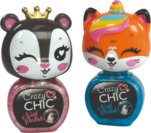 Do kolekcie Lovely radu Crazy Chic bola pridaná nová sada lakov na nechty. Každé roztomilé zvieratko predstavuje jednu farbu laku na nechty na vytvorenie super elegantných nechtov. Obsahuje: 2 laky na nechty v rôznych farbách, aby ste si mohli vytvoriť nechtovú kresbu podľa vlastného štýlu a rozvíjať tak kreativitu a manuálnu zručnosť. Sladké zvieratká nosia malú zlatú korunku alebo majú rôznofarebný roh, rovnako ako ostatné zvieratká z radu Lovely Crazy Chic, ktoré treba nazbierať. Laky sú testované tak, aby sa s nimi malé dievčatká mohli hrať a baviť sa úplne bezpečne, a sú odstrániteľné trením bez použitia rozpúšťadla.
