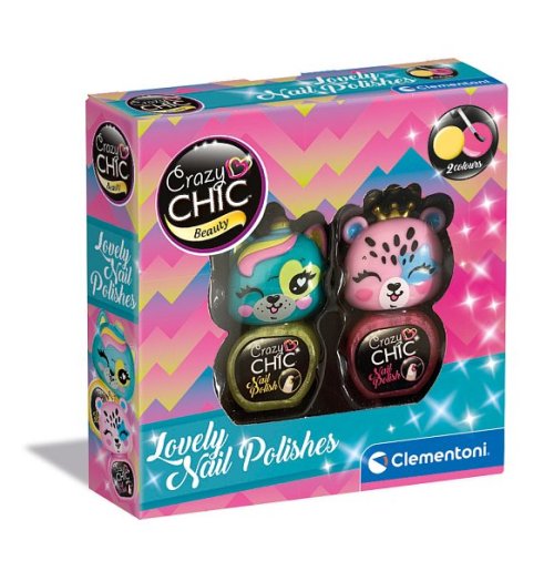 Do kolekcie Lovely radu Crazy Chic bola pridaná nová sada lakov na nechty. Každé roztomilé zvieratko predstavuje jednu farbu laku na nechty na vytvorenie super elegantných nechtov. Obsahuje: 2 laky na nechty v rôznych farbách, aby ste si mohli vytvoriť nechtovú kresbu podľa vlastného štýlu a rozvíjať tak kreativitu a manuálnu zručnosť. Sladké zvieratká nosia malú zlatú korunku alebo majú rôznofarebný roh, rovnako ako ostatné zvieratká z radu Lovely Crazy Chic, ktoré treba nazbierať. Laky sú testované tak, aby sa s nimi malé dievčatká mohli hrať a baviť sa úplne bezpečne, a sú odstrániteľné trením bez použitia rozpúšťadla.