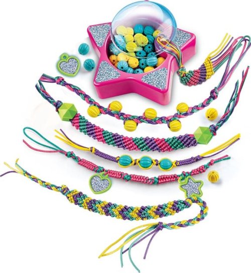 Sada na výrobu pestrofarebných náramkov priateľstva, ktoré budú elegantné a módne! Súprava obsahuje špeciálnu pomôcku na pletenie náramkov pomocou farebných nití a korálikov. Výtvory je možné obohatiť o množstvo farebných korálikov! Hravá aktivita, ktorú je možné vykonávať aj s kamarátmi a ktorá zaručuje zábavu.