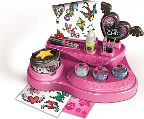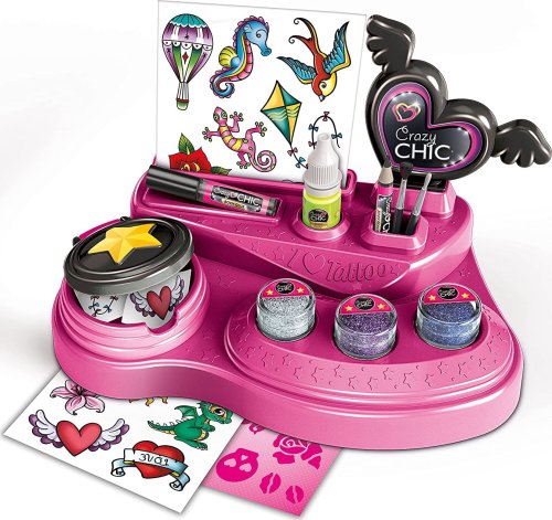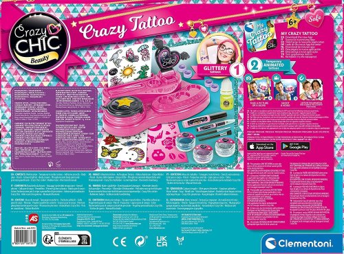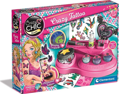 Pre dievčatá, ktoré majú rady tetovanie, je tu nová super cool sada na vytváranie trendy tetovania s iskrivými farbami. Vďaka praktickému pracovnému stolu s príslušenstvom bude popustiť uzdu fantázii a kreativite detskou hrou. Produkt obsahuje nalepovacie šablóny, farebné trblietky a telové farbivo s efektom svietiacim v tme. Exkluzívne pre Crazy Girls obsahuje pracovný stôl aj fantastické tetovanie s rozšírenou realitou. S aplikáciou Crazy Tattoo sa tetovania stanú magicky 3D. Môžete ich fotografovať, personalizovať a predovšetkým zdieľať so svojimi priateľmi prostredníctvom najmódnejších kanálov sociálnych sietí!