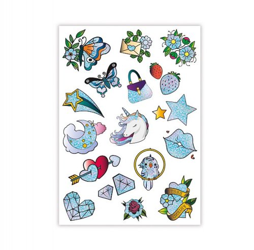 Tetovacia mánia sa práve stala super trblietavou s touto fantastickou sadou glam trblietavých prenosných tetovaní. Veľa trblietavých iskrivých tetovaní pre nasmerovanie vášho štýlu so super elegantným nádychom! Všetko, čo musíte urobiť, je vystrihnúť tetovanie, ktoré sa vám páči, pritlačiť ho ku koži, namočiť špongiou a môžete vyraziť! Táto hra podnecuje kreativitu a umožňuje deťom vyjadriť sa pomocou tetovania a vytvárať originálny vzhľad pre každú príležitosť! Rozmer balenia: 14,5 x 18,5 x 0,2 cm Vek: 6+