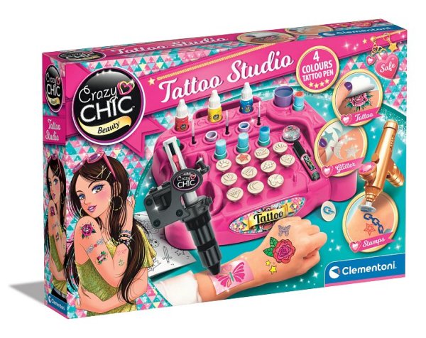 Pre milovníkov tetovania, super cool sada na vytvorenie neuveriteľných tetovanie od ruky alebo podľa šablóny! Pomocou špeciálneho pera na telo s vymeniteľnými farebnými hrotmi sa dievčatá môžu baviť vytváraním vlastných personalizovaných tetovaní, kreslením ich ručne alebo pomocou šablón. Obsahuje tiež telové farby na zafarbenie vytvorených tetovaní, hubky, aplikátory, šablóny a knihu tetovania s kresbami, tipmi a prázdnymi listami, aby ste si mohli vytvoriť svoje obľúbené tetovanie! Rozvíja kreativitu a zručnosť. Rozmer balenia: 45,1 x 31,1 x 7 cm Vek: 7+