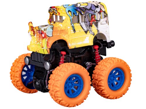Crazy Truck autobus 9 cm na zotrvačník veľké kolesá - mix farieb (zelená, fialová, oranžová, modrá)