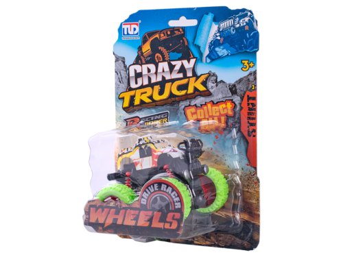 Crazy Truck monster truck 9 cm na zotrvačník veľké kolesá grafitti design - mix farieb (modrá, zelená, oranžová, fialová)