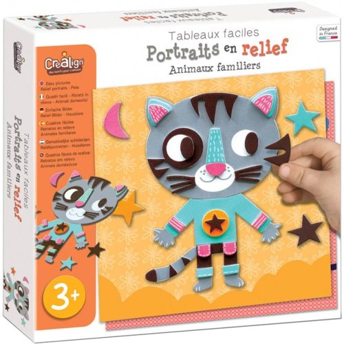 Vytvorte si nádhernú 3D mozaiku s obrázkom domácich zvieratiek Kreatívna súprava od francúzskej značky Créa Lign obsahuje všetko, čo budete na také tvorenie potrebovať V balení nájdete 5 podkladových obrázkov s motívom zvieratiek a tiež 5 hárkov s farebnými penovými samolepkami Nepotrebujete žiadne lepidlo ani nožnice