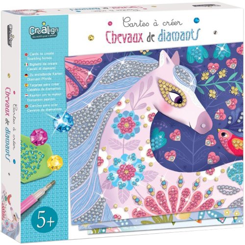 Jedinečná kreatívna súprava pre deti s nalepovacími kamienkami od francúzskej značky Créa Lign Vhodná pre deti od 5 rokov Obsahuje 3 obrázky koní, 4 vrecúška s malými trblietavými kamienkami na nalepenie a 1 pero na nanášanie kamienkov. Vďaka nim si deti kone krásne dotvoria.