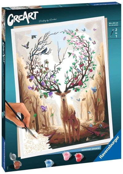 CreArt - to je kreatívna zábava doslova pre každého. Staňte sa na chvíľu profesionálnym maliarom a namaľujte si svoj vlastný obraz. Postupne vyfarbujte jednotlivé plochy podľa návodu (každé číslo na plátne zodpovedá jednej konkrétnej farbe) a doprajte si radosť z tvorivej práce, pri ktorej sa zabavíte na dlhé hodiny. Maľovanie je skvelá činnosť, ktorá nielen baví, ale aj precvičuje zručnosť, zlepšuje koncentráciu a zaručuje spokojnosť a pocit hrdosti všetkým umelcom. Set obsahuje všetko, čo potrebujete na maľovanie: vysoko kvalitný, pevný kartónový podklad s obrazovou predlohou s očíslovanými plochami, sadu akrylových farieb, štetec, kartónový stojan pre kelímky s farbami, rámček. Vykreslené plochy vytvárajú profesionálne vyzerajúce umelecké dielo. Akonáhle obraz dokončíte, nechajte ho zaschnúť a zarámujte ho do rámčeka, ktorý je súčasťou balenia. Maľovanie nikdy nebolo také jednoduché.