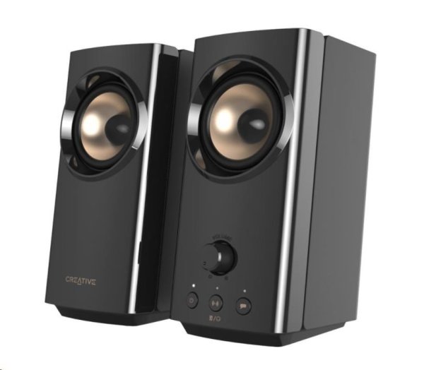 Kompaktné stolné reproduktory Hi-Fi 2.0 s funkciou Clear Dialog a Surround od Sound Blaster pre počítače a notebooky