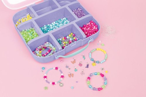 Čaká vás veľmi prenosný šperkársky zážitok! Vyrobte si viac ako 30 náramkov priateľstva s týmto farebným sortimentom 1440 korálikov a kúziel. Uložte si materiály do praktického prenosného puzdra, ktoré si môžete vziať na cesty! Deti budú mať množstvo doplnkov, ktoré môžu vymieňať so starými priateľmi alebo novými priateľmi, ktoré pri tvorení stretnú, takže je to ideálna aktivita na rande. Táto kompletná sada obsahuje všetko, čo mladí remeselníci potrebujú na to, aby boli na cestách kreatívni, vrátane šnúrky a jednoduchých pokynov pre výrobcov náramkov. Postupujte podľa vzorových príkladov alebo voľných kreácií. Táto sada je skvelým tipom na darček, či už k sviatku, narodeninám alebo len tak! Ideálne pre vek 8+.